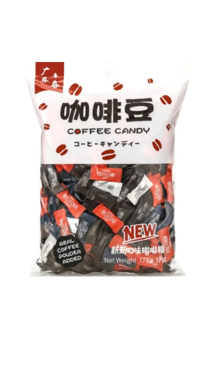 :COFFEE CANDY · کافئین دار و خوش بو کننده دهان · طعم ماندگار و بی نظیر قهوه · تهیه شده از عصاره طبیعی قهوه: 200 گرم