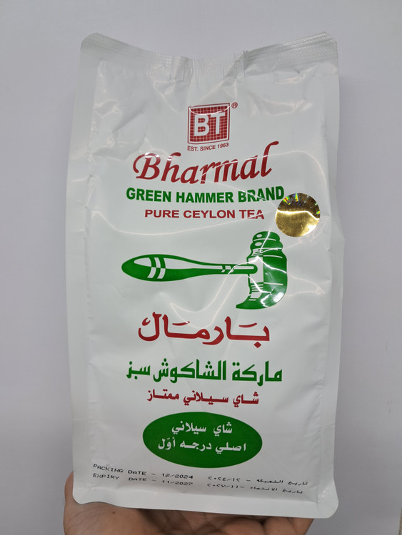 چای چکش سبز بارمال یک چای سیاه با کیفیت بالا از سریلانکا است. این چای از برگهای چای تازه و جوان شکسته سیلان تهیه میشود. این چای بدلیل زود دم بودن و رنگ زیبایش، یکی از محبوبترین انواع چای در ایران است: 500 گرم