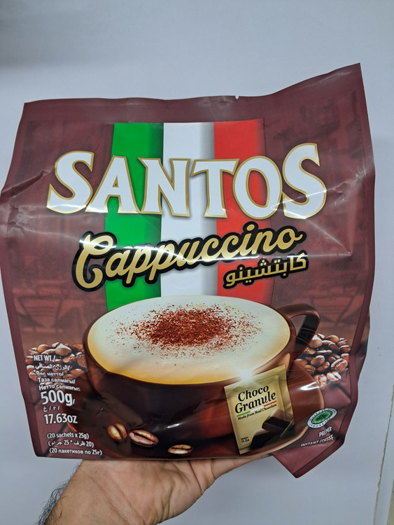 کاپوچینو سانتوس یک کافی میکس فوری ۳ در ۱ است که در هر ساشه، ترکیبی از قهوه فوری، کرمر کف ساز و گرانول شکلاتی ارائه می دهد. این ترکیب باعث می شود نوشیدنی نهایی، بافتی کرمی، کف دار و طعمی ملایم و شکلاتی داشته باشد؛ چیزی که بسیاری از مصرف کنندگان از یک کاپوچینو انتظار دارند. این محصول برای افرادی طراحی شده که یا زمان و تجهیزات دم آوری قهوه را ندارند، یا ترجیح می دهند بدون دردسر، یک نوشیدنی گرم و انرژی بخش با طعمی متعادل مصرف کنند. برخلاف قهوه های تلخ تخصصی، اینجا تمرکز روی «لذت عمومی» و «قابلیت مصرف روزانه» است، نه پیچیدگی طعمی.