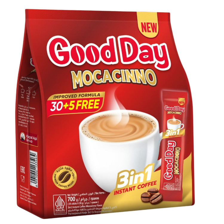 کافی میکس گوددی موکاچپینو یک کافی میکس فوری خوشمزه است که با طعم غنی قهوه طعمدار شده است.: 35 عددی اندونزی تاریخ محصول 2027